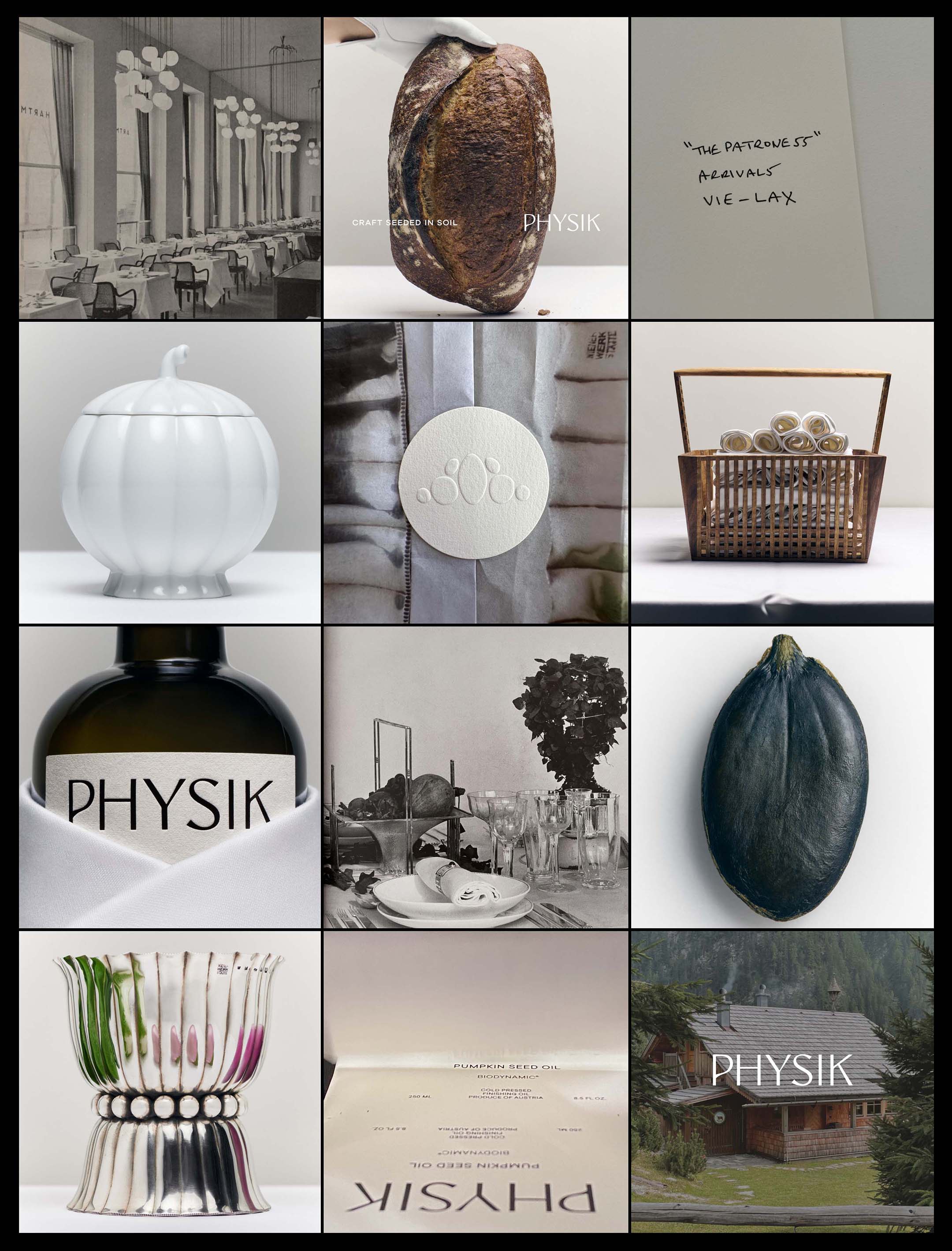 Custom logo, visual identity, and packaging design for Physik - a new food & beverage company. The brand’s ethos lies in bringing the belief of Austrian farming to California and the world’s pantry. The brand's visual identity is a dialogue between contemporary culture and historical artistic movements in Austrian design, including the Vienna Secession, Wiener Werkstatte, Art Deco into California Modernism. My role was to build the brand elements from scratch and bring the company to launch with their first product, a biodynamic pumpkin seed oil made and bottled in Austria.